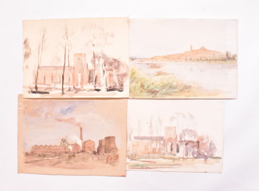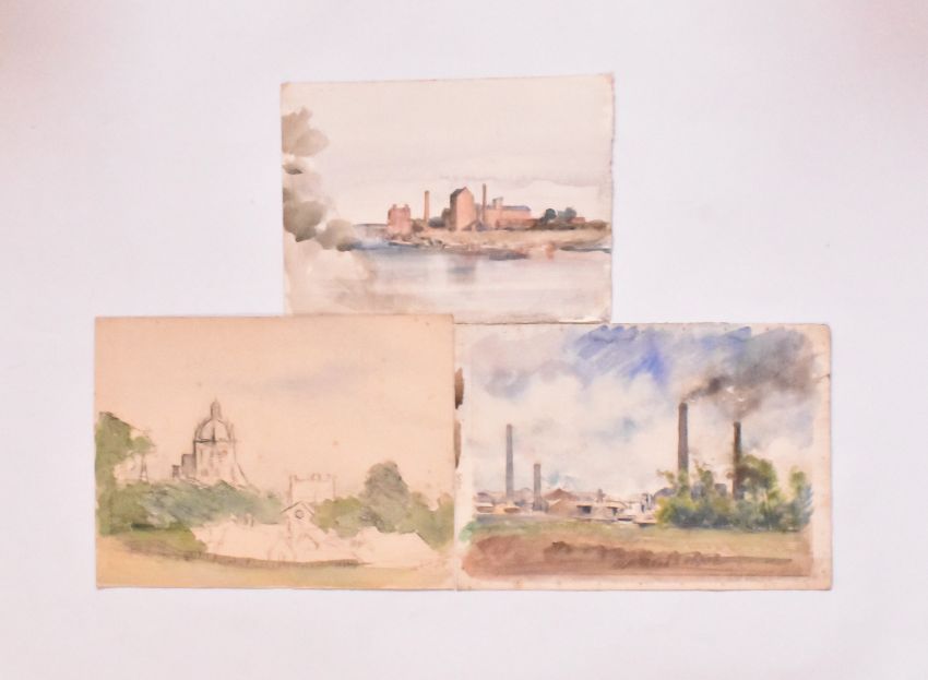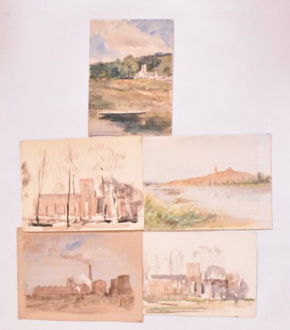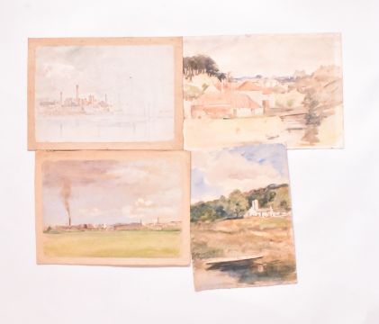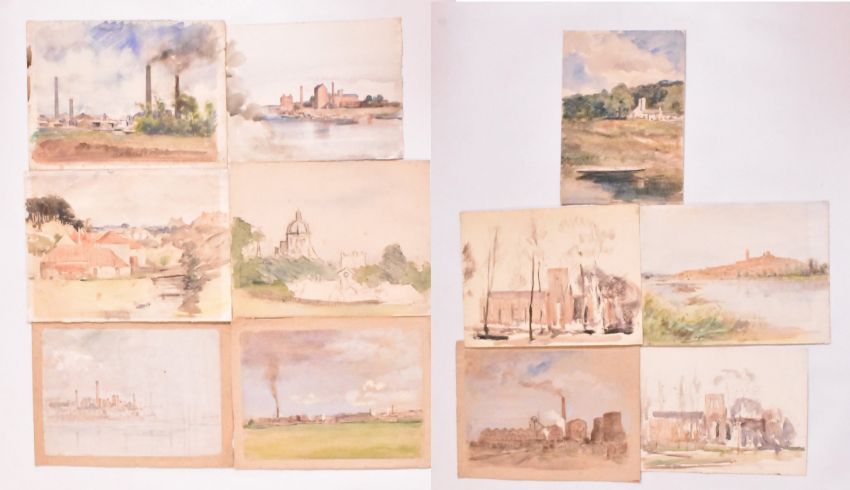 Alfred Edward Borthwick (1871-1955) - A collection of eleven early 20th-century en plein air watercolour on paper landscape paintings. The collection depicting Scottish landscapes with town/city views. The lot to include distant views of industrial city / town, together with other town scenes. Unsigned. Unframed.