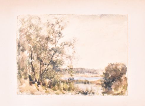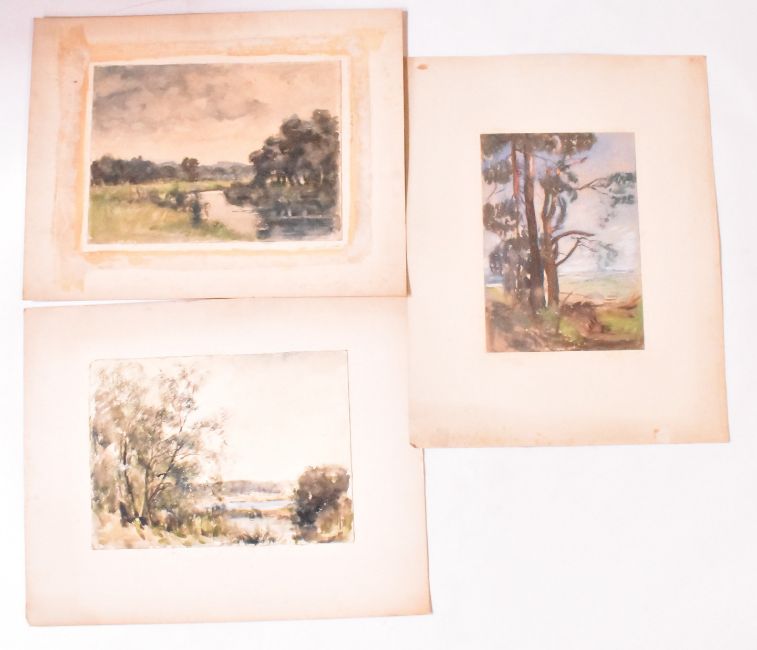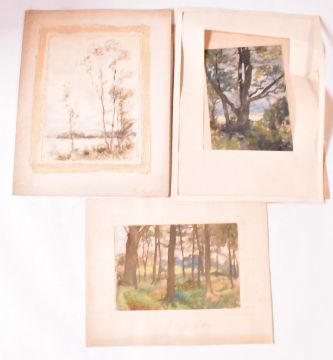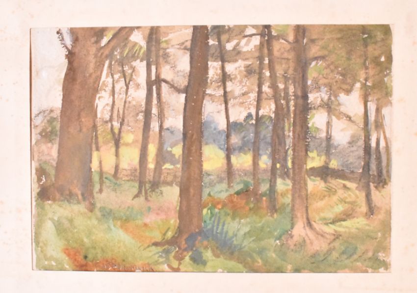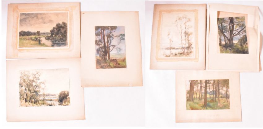 Alfred Edward Borthwick (1871-1955) - A collection of six early 20th century watercolour on paper paintings. The paintings depicting scenery of Scottish landscape, woods and fields. Three are signed and three are unsigned. Unframed.