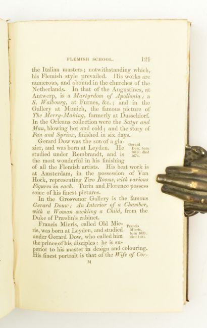 Art history. 1835 History of Painting: Ancient and Modern. Interspersed with Anecdotes. Publ. Davis & Porter. Contemp. full cloth binding, gilt pictorial artist palette to spine, very light edgewear & discolouration to spine otherwise exceptionally bright, contemp. pencil ownership inscription Borthwick to front pastedown, spine a trifle cocked, edges a touch spotted, otherwise very smart. A scarce anonymously published work, covering many European schools, Egyptian, Chinese and British art, finishing with a chronological list of painters. Small 8vo.