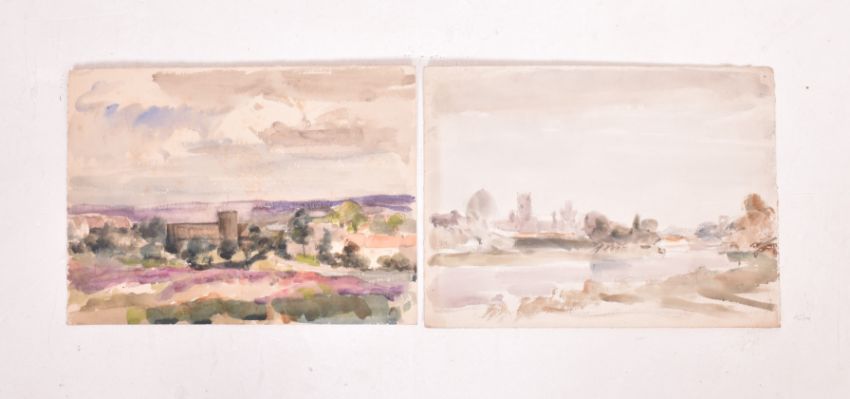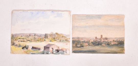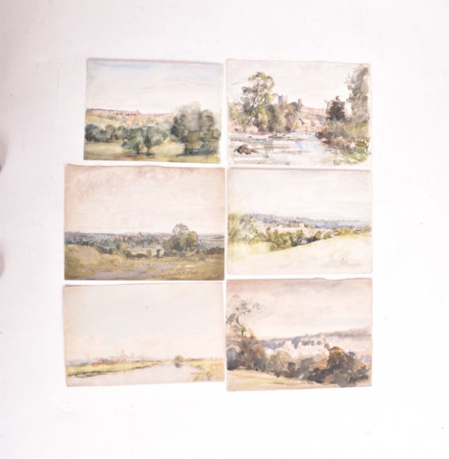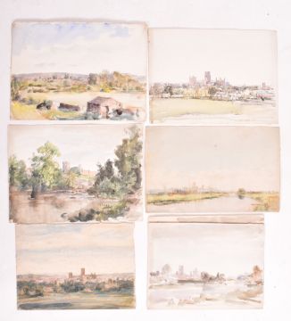 Alfred Edward Borthwick (1871-1955) - A collection of twelve early 20th-century en plein air watercolour on paper landscape paintings. The collection depicting Scottish landscapes with with town & catherdral view. Various views of similar subject at different times of the day and different point of view. Unsigned. Unframed.