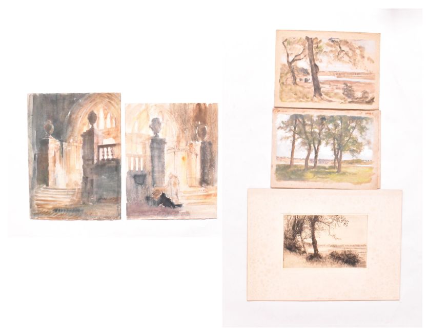 Alfred Edward Borthwick (1871-1955) - Two early 20th century en plein air watercolour on paper paintings, being studies of The Open Gate oil on canvas. Unsigned. Unframed.