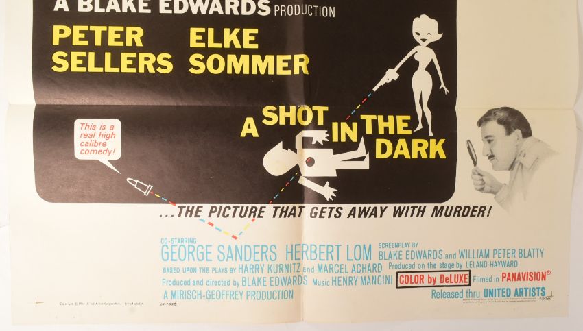 A Shot In The Dark (1964 sequel to The Pink Pather, starring Peter Sellers) - original British quad cinema poster. 30x40", folded (as issued). Generally 7/10, would benefit from framing.