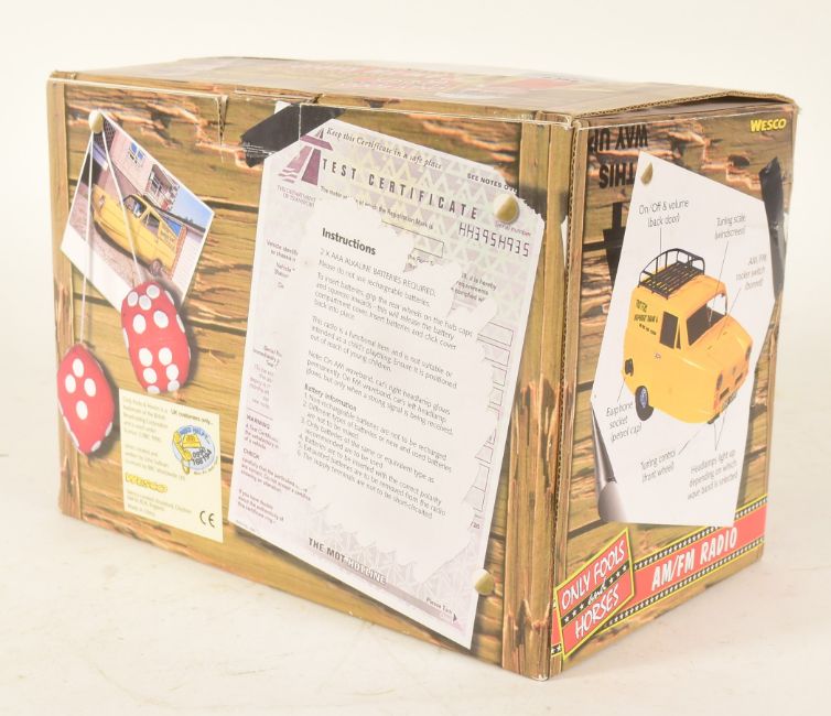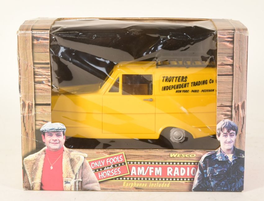 Only Fools & Horses (BBC Sitcom 1981-2003) - vintage 1990 Wesco made Only Fools And Horses 'AM/FM Radio' in the form of the Trotter's Reliant Regal Supervan III 'Trotter Van'. Housed within its original box, with original headphones present. Appears unused.