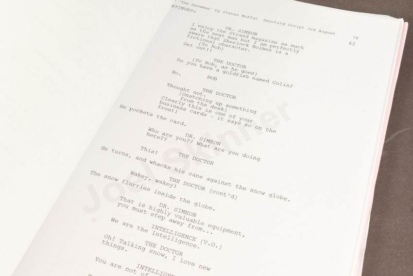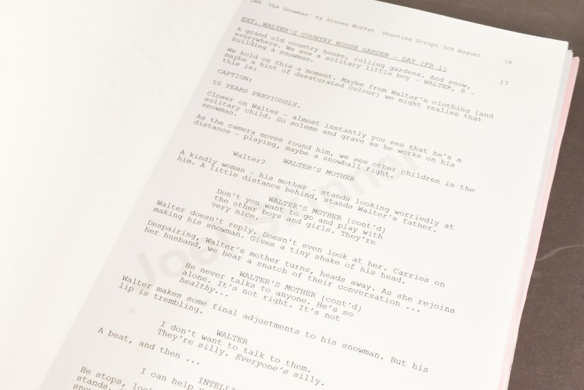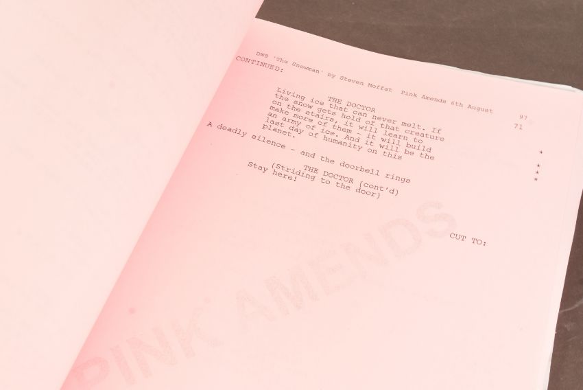 Doctor Who (BBC sci-fi series 1963 to present) - The Snowmen (2012 Christmas Special from the Eleventh Doctor era) - original production used full shooting script dated 3rd August 2012 carrying the working title 'The Snowman'. 147pp on white stock, with some pink insert pages. Retains original metal fastner. From a member of the VFX crew.