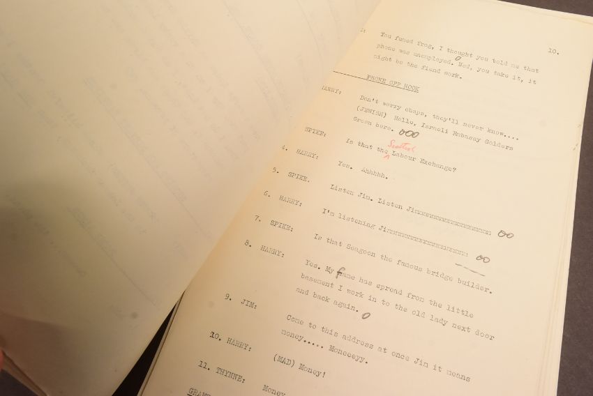 The Goon Show (BBC Radio Comedy Programme 1951-1960 starring Spike Milligan, Harry Secombe and Peter Sellers) – an original recording script owned and used by producer John Browell for Series 9, Programme 15 ‘The Tay Bridge’. The script is well annotated throughout in Browell’s hand, with stage directions, altered lines, and general notes taken during recording. His name ‘John’ is noted to the cover page. 24pp, plus cover. With original RX / transmission details sheet. (2)