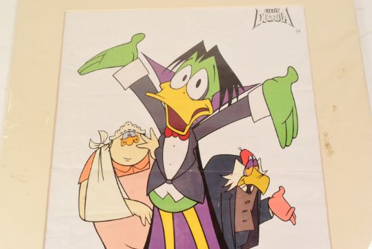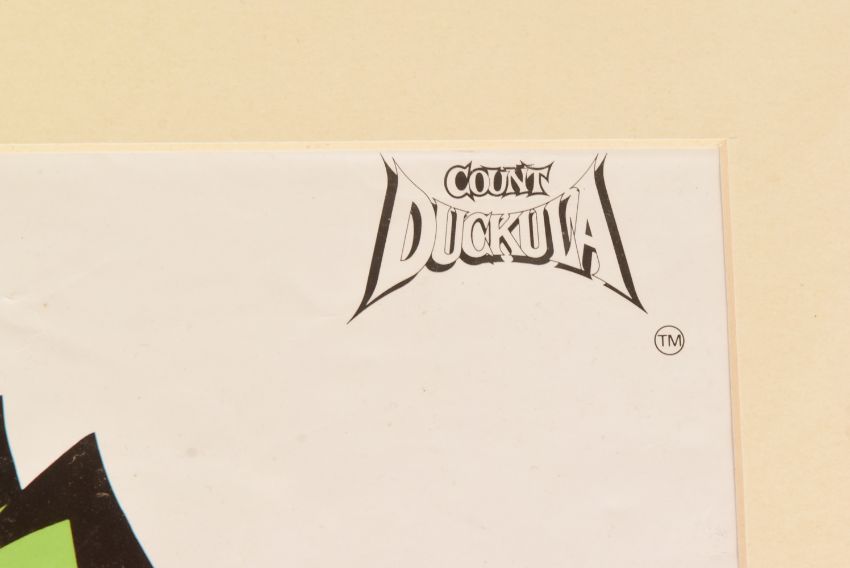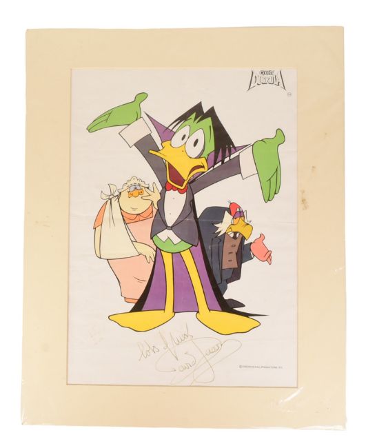 Count Duckula (1988 Animation Series) - Sir David Jason (voice) - autographed 16x20" vintage Cosgrove Hall Productions Ltd promotional poster, signed by Jason in black ink to the lower edge, undedicated. Poster with some folds, but mounted ready for framing. Total size 16x20".