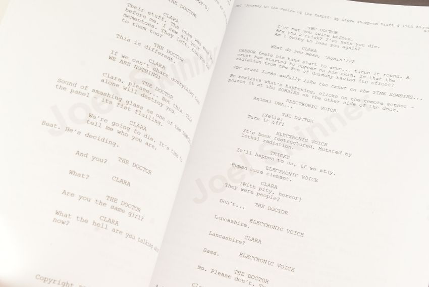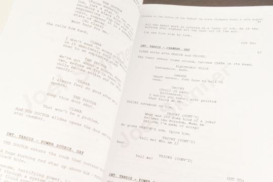 Doctor Who (BBC sci-fi series 1963 - present) - Journey To The Centre Of The TARDIS (2013 Eleventh Doctor era) - two original production used scripts from the episode. Draft 4 15th August 2012 and Production Draft 31st August 2012. 62pp and 68pp respectively, double sided. Retaining original metal clasps. From a member of the VFX crew.