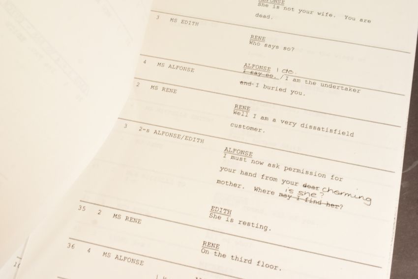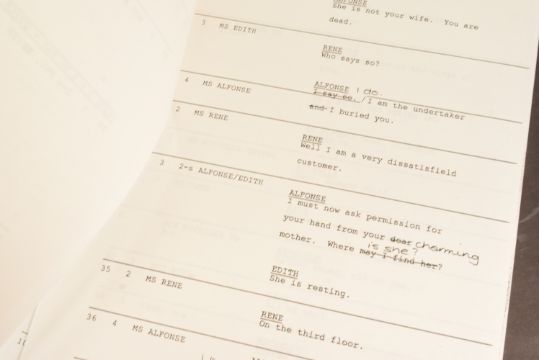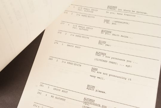 'Allo 'Allo! (BBC Sitcom 1982-1992) - Series 5 Episode 24 - original production used 'TX' script for the fifth series. Dated 22nd July 1988. 60pp, plus Running Order pages, Cast List, and cover on white paper stock. Features the 'Allo 'Allo titles and illustrated flags to the cover. Original production used script. 'Allo 'Allo! is a British sitcom television series, created by David Croft and Jeremy Lloyd, starring Gorden Kaye, Carmen Silvera, Guy Siner, Richard Gibson, Vicki Michelle and an ensemble cast. Originally broadcast on BBC1, the series focuses on the life of a French café owner in the town of Nouvion, during the German occupation of France in the Second World War, in which he deals with problems from a dishonest German officer, local French Resistance, the handling of a stolen painting and a pair of trapped British airmen, all while concealing from his wife the affairs he is having with his waitresses.