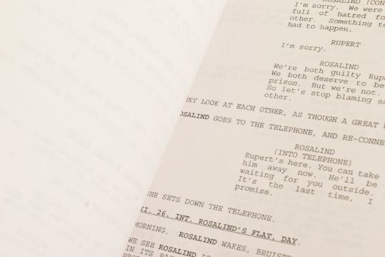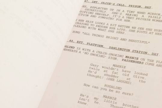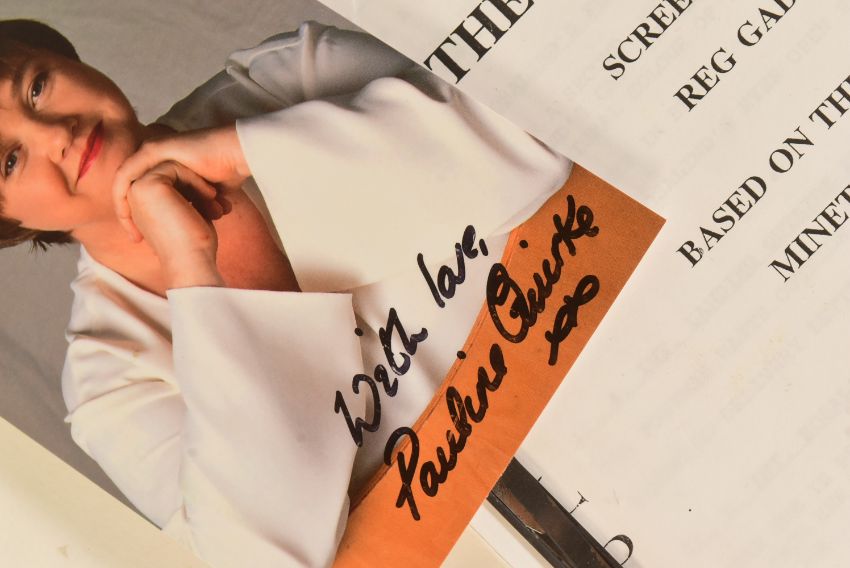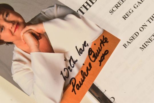 The Sculptress (1996 BBC series starring Pauline Quirke) - original shooting script from 'Part Two' dated 25th August 1995. Signed by Quirke to the front cover, and supplied with a signed photograph. Originally donated by Quirke to a charity auction.The Sculptress is a crime novel by English writer Minette Walters published in 1993. She won an Edgar and a Macavity Award for the book. The novel was adapted as a BBC-TV series in 1996, starring Pauline Quirke as Olive Martin.