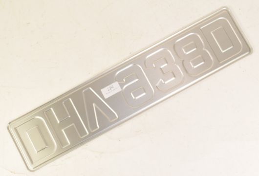 Only Fools & Horses (BBC Sitcom 1981-2003) - Reliant Regal Supervan III Number Plate - DHV 938D - a pressed metal numberplate identical to that which famously adorned the Reliant Regal Supervan III ' Trotter Van ' throughout the series. Autographed by Sir David Jason in silver ink to the front. Full size number plate. Supplied with a certificate of authenticity from the Only Fools and Horses Appreciation Society.