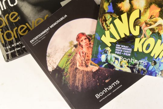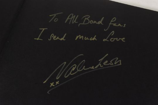 James Bond 007 Interest - a collection of James Bond related memorabilia from Valerie Leon's personal collection, to include: 'Bond Girls Are Forever' large hardcover book signed by Leon to the flyleaf, 'All About Bond - Photographs By Terry O'Neill' signed to an inner page by Leon, and two Bonham's auction catalogues featuring James Bond memorabilia also signed by Leon to the relevant pages.