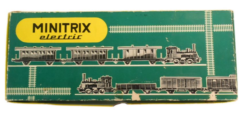 Model Railway - a boxed Mini Trix made OO gauge model railway train set No. 1902 containing a 0-6-0 locomotive, x3 rolling stock wagons and track, Housed in the original box.