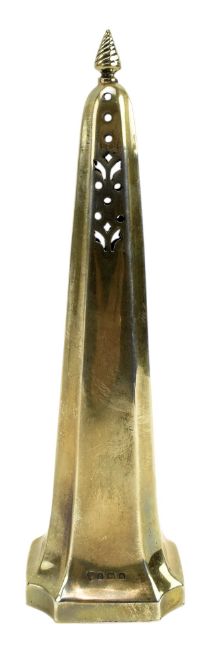 A 20th century George V hallmarked silver sugar sifter / castor. Hallmarked year 1925, Birmingham. Sponsors mark for Williams (Birmingham) Ltd. Weight approx. 128.5g.