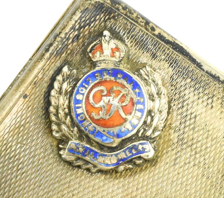 A George VI hallmarked silver & enamelled cigarette case. Hallmarked year 1939, Birmingham. Sponsors mark for William Neale & Son Ltd (from 1909). 124.6g.