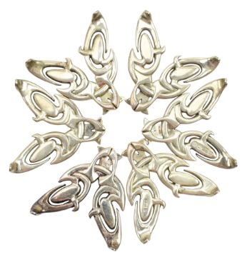 A Liberty of London hallmarked silver place setting set. Complete in the presentation base. Hallmarked year 1992, London. Sponsors mark Jocelyn Burton. Total weight 147g.