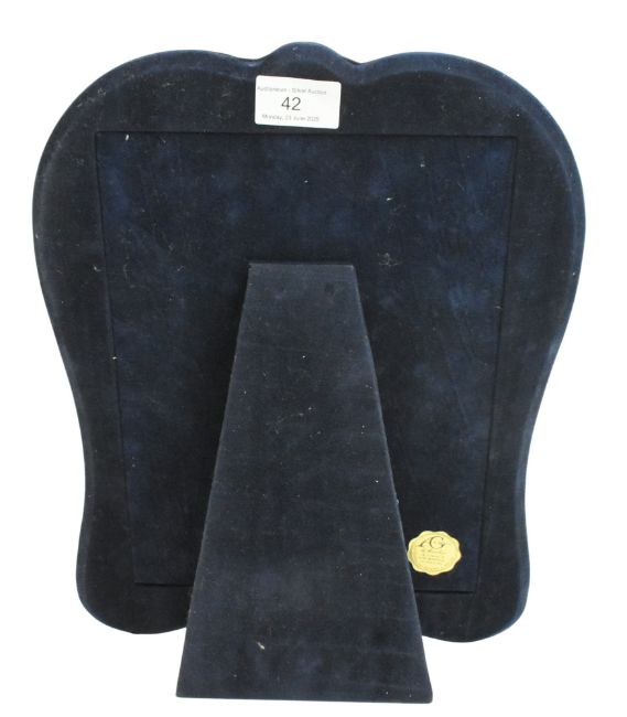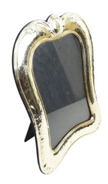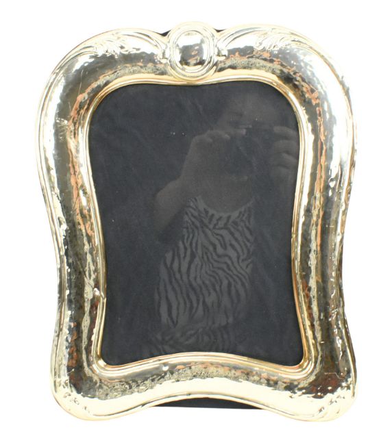 An Italian 925 silver, silver photo frame by Al Gioiello De Marchesi. The frame having a scrolled shape with top roundel.
