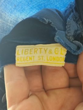 Liberty & Co., London - an early 20th century 1930s Art Deco period blue velvet & silk cocktail dress. Size 36, label for Liberty to interior. The cocktail robe with V shaped neckline & cinched waist, quarter length arms & long flaring skirt.
