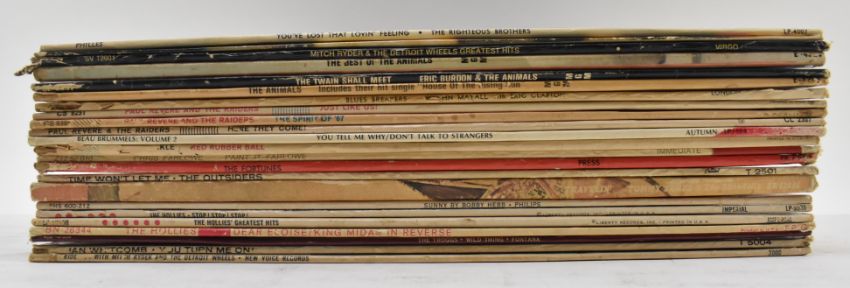 60s Albums - US Originals - a selection of 20+ long play / LP vinyl record albums. The lot comprises The Righteous Brothers You've Lost That Lovin' Fellin' (PHilles 4007), Mitch Ryder Sock It To Me (NV 2003), The Best Of The Animals (E-4324), Eric Burdon & The Animals The Twain Shall Meet (SE-4537), John Mayall And the Blues Breakers With Eric Clapton (PS 492), Paul Revere & The Raiders Just Like Us (CS 9251), The Beau Brummels Volume 2 (LP/104), The Cyrkle Red Rubber Ball (CS 9344), Chris Farlowe Paint It Farlowe (Z12 52 010), The Troggs Wild Thing (SRF-67556), The Fortunes, The Outsiders, Tommy James, The Hollies and more. G to VG condition across the lot.