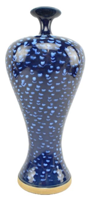 A 20th century Chinese blue glazed light blue dotted porcelain vase. The baluster shaped vase covered in rich blue glazed with light blue dots. Impressed four character mark to the base.