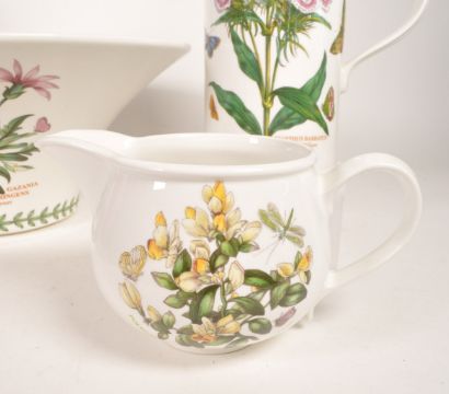 Late 20th / 21st century Portmeirion The Botanic Garden ceramic pieces and mugs. Comprised of a large fruit bowl, jug and cafetiere along with a boxed set of Portmeirion mugs by Sara Miller of London. Largest piece measuring approx. 14cm x 33.5cm.