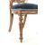 20th century miniature mahogany apprentice style chair. Featuring a balloon back dining chair style with turned carved legs and blue upholstery to the seat. Measuring approx. 45cm x 25cm x 23cm.