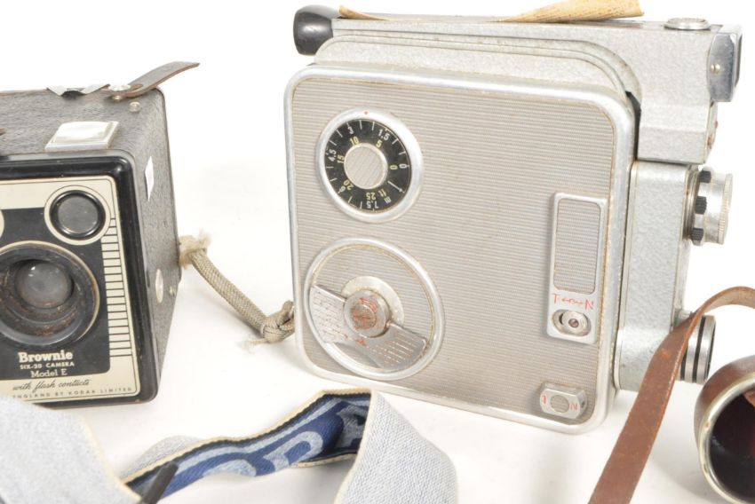 A collection of vintage 20th century 35mm and other cameras & lenses. The collection to include examples such as Canadian Eastman Kodak No. 2 folding autographic brownie 21817 in case, Halina Super 35X with anastigmat 1:3.5 F=45mm lens in original carry case, Praktica MTL3 35mm camera, 2 x Kodak Brownie six-20 cameras Model E along with a Meopta Admira 8F cine camera and accessories.