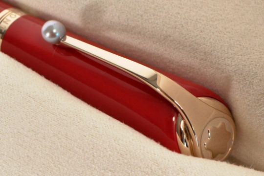 Mont Blanc Muses Collection Marilyn Monroe special edition ballpoint pen in red. The design of the Muses Marilyn Monroe was inspired by the iconic Ferragamo high-heels, which Marilyn wore, reflecting her femininity and sensuality. The colour of the writing instrument refers to her signature lipstick (Ruby Tuesday by Max Factor). The shape of the clip with pearl recalls her jewellery and love of pearls. Marilyn Monroe (1926 - 1962) has become an American cultural icon, celebrated by many all over the world. The actress was a prodigy of Lee Strasberg and one of the most popular sex symbols of the 1950s. To this day she continues to inspire women all over the globe, ensuring her status as a culture and style icon. Comes in original box with outer case, booklet and certificate of authenticity. # 116068