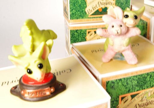 Real Musgrave - Pocket Dragons - Collection of 21st century boxed resin baby dragon figures. Examples to include Don't Panic!, Cookies For The Queen, Bunny Hug, Dizzy, Kitchen Crybaby, Roly Poly, and others. Largest box measuring approx. 15cm x 15cm x 15cm.