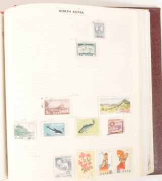 A collection of 19th and 20th century Asain postage stamps. The collection to include franked and unfranked examples from countries such as Iraq, Japan, China, Malaysia, Jordan, South Korea, Korea, North Korea, Kuwait, Lebanon, amongst others. Housed in a Stanley Gibbons Devon stamp album. Featuring Kiautschou Bay examples - red 1905 Kaisers Ship 4C Red, Korean examples - unfranked 1884 10M Light Blue, franked 1903 Flacon 1C Brown, amongst many others.