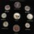 A collection of contemporary commemorative coins. The collection housed within a wooden display case with dark blue baize lining. Featuring silver and gold plated examples, including a selection of London Mint Office ' The Changing Face of Britain's Coinage ' series coins.