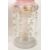 Pair of 19th century Victorian pink glass lustres. Decorated with hand painted flowers to the bowl, raised on a circular base with a scalloped top and spear cut crystal drops hanging from the bowl. Measuring approx. 30cm tall.