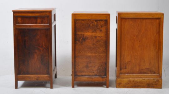 Two early 20th century oak bedside cabinets. One with drawer and cupboard below - near pair. Together with another. Measures approx: 75x37x44cm