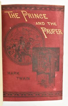 Twain, Mark (pseud. Samuel Longhorne Clemens). Two UK first editions. London: Chatto & Windus. Comprising 1880 A Tramp Abroad and 1881 The Prince and the Pauper, a Tale for Young People of All Ages. Later half crushed morocco & marbled boards, spines sunned, extremities bumped, boards a touch grubby, bound with orig. publisher's boards (loose in A Tramp Abroad). Contemp. ownership inscription to title pages and half title in A Tramp Abroad, some spotting & occ. marks internally. 8vo. (2vol)