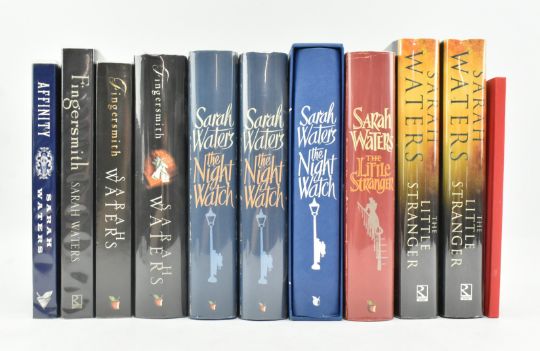 Waters, Sarah. A collection of signed first editions, limited editions & proof copies. Comprising 1999 Affinity, uncorrected proof copy; 2002 Fingersmith, uncorrected US proof copy, signed UK proof copy, and signed first UK edition (ownership inscription ffep); 2006 The Night Watch, signed limited edition in slipcase, signed and dated first editon & signed dated and lined first edition; 2009 The Little Stranger, two signed first US editions and a signed UK edition, as well as a bound advance reading proof copy. Publisher's wraps or boards in unclipped dust wrappers, minor shelf wear, else an excellent collection. 8vo. (11)