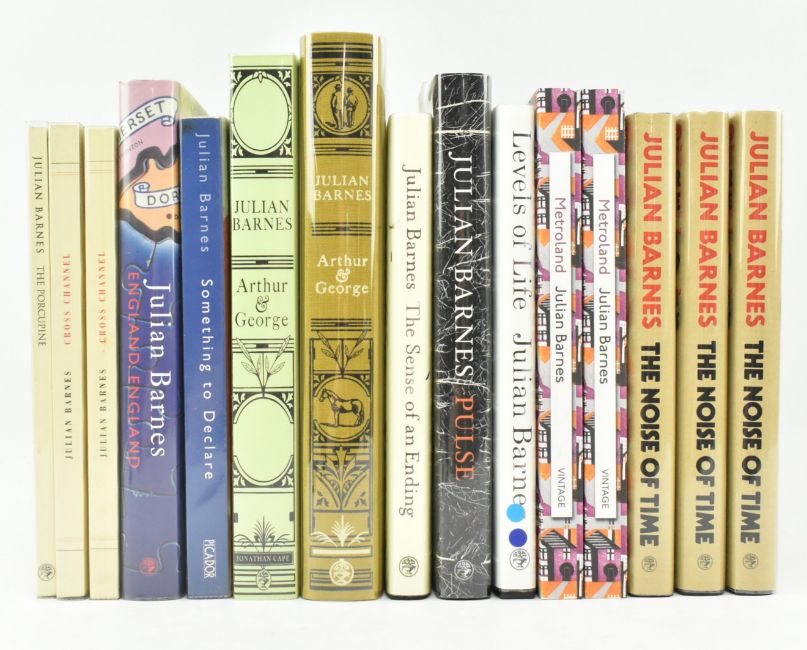 Barnes, Julian. A collection of fourteen signed first editions and proof copies. Comprising 1992 The Porcupine, signed uncorrected proof copy with some amendments throughout; 1996 Cross Channel, signed limited advance proof copy an another unsigned proof; 1998 England, England, signed first edition; 2002 Something to Declare, uncorrected bound proof; 2005 Arthur & George, signed first and an advance proof copy; 2011 The Sense of an Ending, signed first edition with black edges & Man Booker shortlist bookmark; 2011 Pulse, signed & dated; 2013 Levels of Life, signed and dated; two signed copies of 2016 Metroland archive edition; and 2016 The Noise of Time, three signed examples. Publisher's orig. wraps & hardbacks in unclipped dust wrappers with Mylar protective sleeves, an excellent collection including signed Booker Prize winner The Sense of an Ending. 8vo. (15)