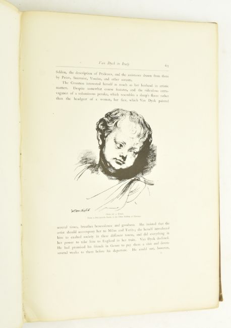 Art. 1896 Sir Anthony Van Dyck, his Life and Works by Jules Guiffrey. Translated from the French by William Alison. London: H. Henry & Co. Limited. Limited edition of 265, of which 250 for sale, this unnumbered & out of sequence. Ex Borough of West Ham Public Library. Publisher's cloth with library gilt stamp to front board & spine, loss to tail of the spine, extremities rather bumped, some rubbing & marks to the boards, lib bookplate to front pastedown, binding a touch tender after front hinge, tissueguards a little age-toned, the odd spot. Lavishly illustrated with plates throughout after Van Dyck. Elephant folio. (1)