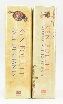 Follett, Ken. Two signed first editions from the Kingsbridge & Century series. Comprising 2007 World Without End (the sequel to The Pillars of the Earth), signed to title page; and 2010 Fall of Giants. London: Macmillan. Publisher's boards in unclipped dust wrappers in Mylar protective covers, extremely light occ. shelfwear, else fine. 8vo. (2)