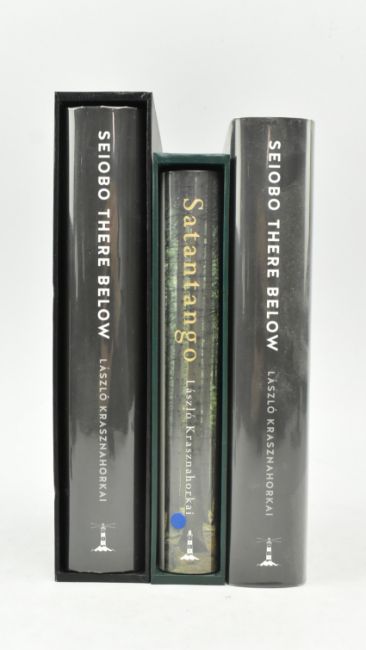 Man Booker International Prize 2015 winner:- Krasznahorkai, Laszlo. Three signed first editions, two in custom slipcases. Comprising 2015 Seiobo There Below, two copies, one signed & dated by author to title page, the other signed by author & translator Ottilie Mulzet; and 2012 Satantango, signed to title page & housed in custom slipcase. Publisher's boards in unclipped dust wrapper with Mylar protective sleeve, fine. Krasznahorkai was the first Hungarian author to be awarded the Man Booker International Prize. 8vo. (3)