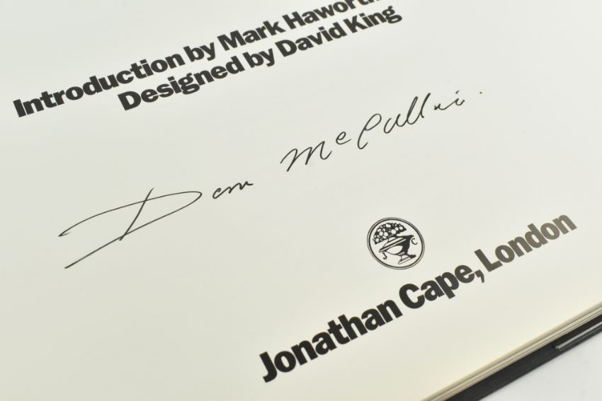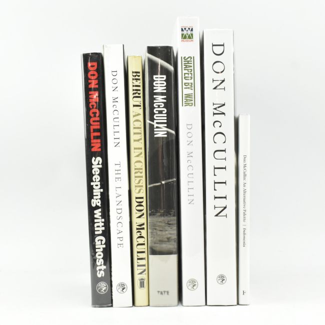 Photography interest:- McCullin, Don. A collection of seven signed first edition photographic coffee table books. Comprising 2015 Don McCullin - Jonathan Cape edition, signed to title page; 1983 Beirut - a City in Crisis, signed to half title; 2010 Shaped by War, signed to title page; 2018 The Landscape, signed to title page; 2019 Don McCullin - produced for the 2019 exhibition at the Tate London, signed to title page; 2016 An Alternative Palette, signed to ffep; and 1994 Sleeping with Ghosts - a Life's Work in Photography, signed to title page. Publisher's orig. boards, some minor edgewear commensurate with books of this size, else an excellent collection of McCullin's urban and wartime photography. Largest oblong folio. (7)