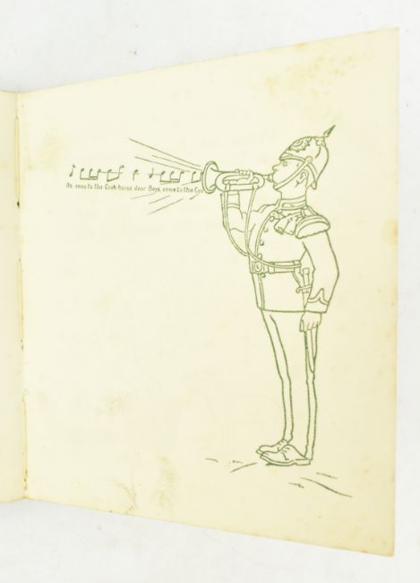 WW1 interest. [1915] Peeps at Our Soldiers. London: Gale and Polden. Publisher's quarter cloth with pictorial inset cover, extremities rubbed and bumped, some discolouration to pictorial cover, ownership inscriptions to verso ffep & half title, binding straining & visible after first colour plate and a little tired throughout. Illustrated with colour plates and black and white illustrations. A rather positive depiction of soldiers' military life and experience in the early First World War. 16mo. (1)
