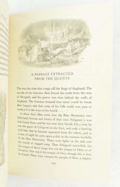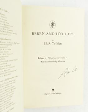 Tolkien, John Ronald Reuel. 2017 Beren and Luthien. edited by Christopher Tolkien, with illustrations by Alan Lee. Signed by Alan Lee to title page. Publisher's cloth in unclipped dust wrapper with Mylar protective sleeve, closed tear of 1.5cm to head of spine, else very smart. A beautifully illustrated edition of Tolkien's high fantasy compilation of tales from Middle-earth. 8vo. (1)