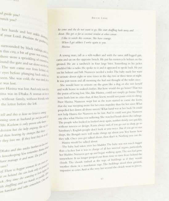 Contemporary Anglo / American - Indian fiction. A collection of maj. signed modern first editions and matched proof copies. Comprising Brick Lane by Monica Ali, A Case of Exploding Mangoes by Mohammed Hanif, Sacred Games by Vikram Chandra, The Gurkha's Daughter by Prajwal Parajuly, Our Lady of Alice Bhatti by Mohammed Hanif, Partitions by Amit Majmudar, The Blood of Flowers by Anita Amirrezvani, The Consequence of Love by Sulaiman Addonia, Narcopolis by Jeet Thayil, The Boat by Nam Le, and How Opal Mehta Got Kissed, Got Wild and Got a Life by Kaavya Viswanathan. Publisher's boards in dust wrappers with Mylar protective covers / wraps, minor shelfwear, else excellent. Eleven titles, twenty-two books. 8vo. (1 box)