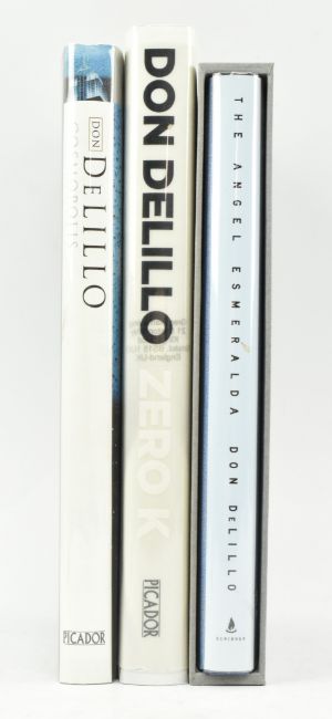 DeLillo, Don. Three signed first editions. Comprising 2003 Cosmopolis, unsigned; 2013 Zero K, signed to title page; and 2011 The Angel Esmeralda, signed to title page (a few odd marks to dust wrapper) and housed in custom slipcase. Publisher's boards in unclipped dust wrappers, minor shelfwear. 8vo. (3)