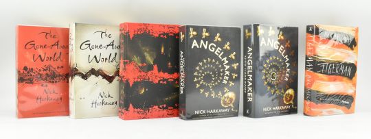 Harkaway, Nick (pseud. Nicholas Cornwell). A collection of six proof copies, limited editions and signed first editions. Comprising 2008 The Gone Away World, advance uncorrected proof copy, signed lined & dated first edition, and signed limited edition; 2012 Angelmaker, advance uncorrected bound proof copy and signed & dated first edition; 2014 Tigerman, signed first edition. Publisher's orig. boards & wraps, minor handling marks, else a smart collection. 8vo. (6)