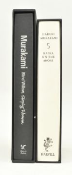 Murakami, Haruki. Two signed de luxe limited editions in slipcase. Comprising 2005 Kafka on the Shore, limited edition of 1000, this No. 640, signed in kanji to bookplate & complete with postcards, bound in full white cloth with just minor wear to head & tail of the spine & housed in black slipcase with cat image; and 2006 Blind Willow, Sleeping Woman, limited edition of 1000, this No. 812, signed haruki to bookplate, bound in quarter black cloth with cherry blossom pictorial paper covered boards, housed in matched black slipcase. An exceptional pair with just the lightest shelfwear to cases. 8vo. (2)