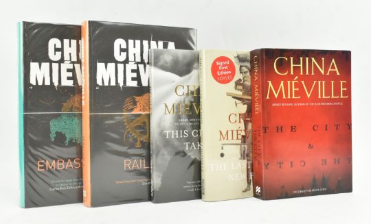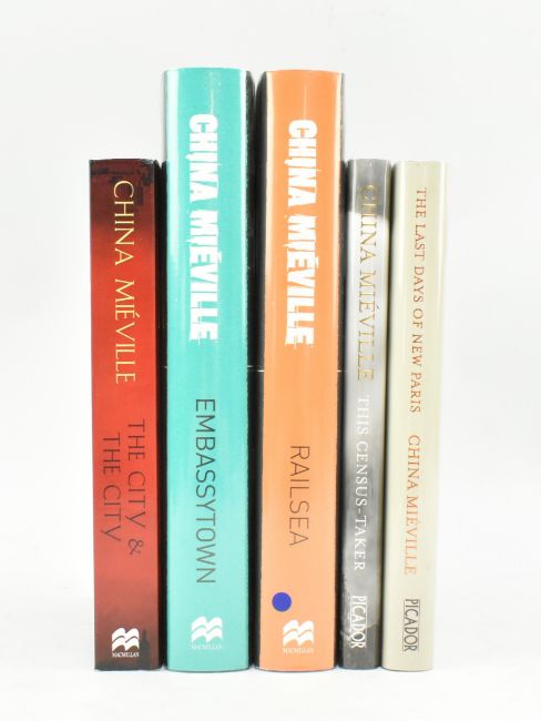 Mieville, China. Four signed first editions and a proof copy. Comprising 2009 The City and the City signed proof copy, 2011 Embassytown, 2012 Railsea, 2016 This Census-Taker, and 2016 The Last Days of New Paris (Foyles sticker to cover). Publisher's boards in unclipped dust wrappers, proof in orig. wraps, minor shelfwear & bumping to proof else excellent. 8vo. (5)