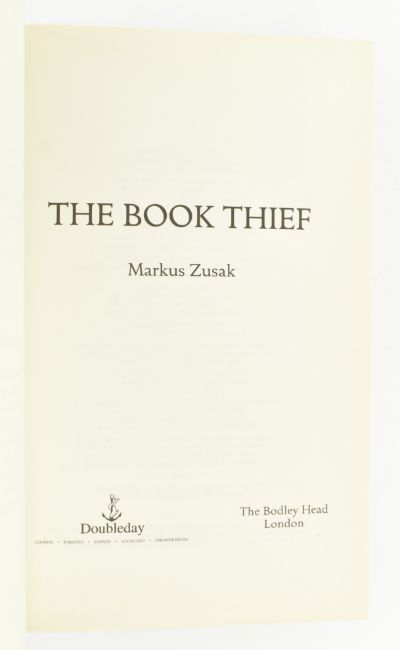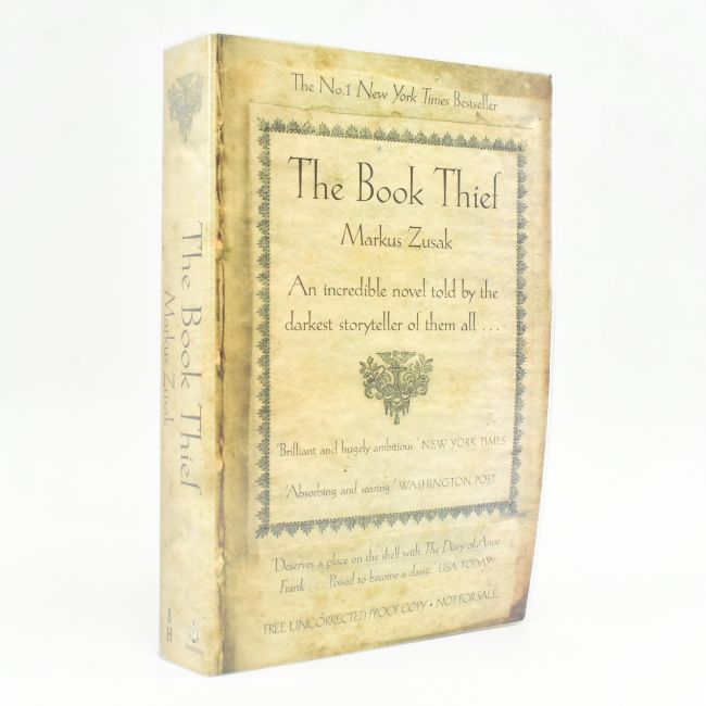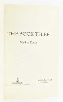 Zusak, Markus. 2007 The Book Thief. London: The Bodley Head & New York: Doubleday. Free advance uncorrected proof copy. Publisher's wraps, some age-toning to the textblock & minor shelfwear, else smart. A scarce advance proof copy of Zusak's important WWII Holocaust novel. 8vo. (1)