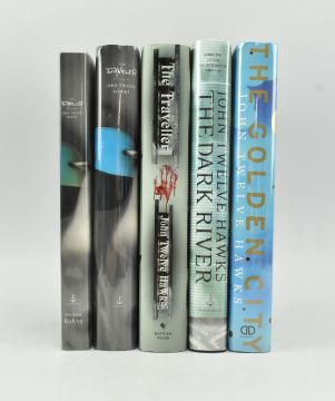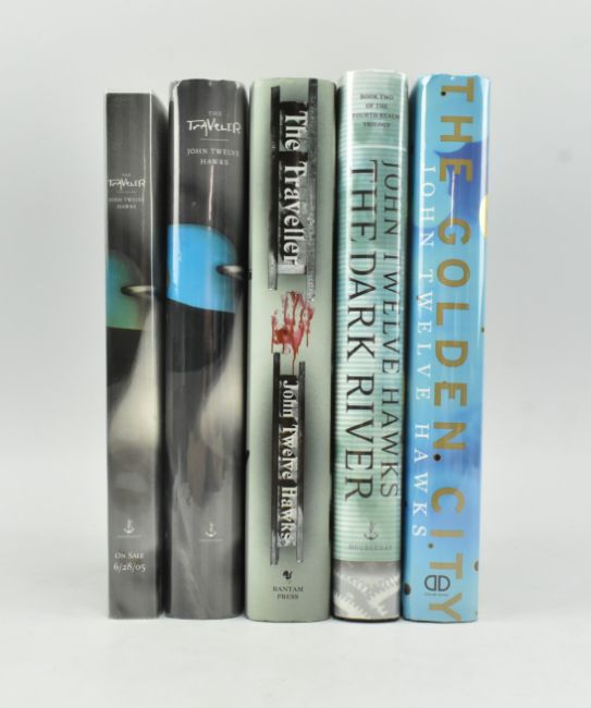 Contemporary science fiction:- Twelve Hawks, John (pseud.). 2005 The Traveller, first UK edition, and 2005 The Traveler, advance proof copy and signed limited first US edition stamped No. 408 of 777; 2007 The Dark River, signed and stamped limited US edition No. 409 of 777; and 2009 The Golden City, signed and stamped limited US edition being No. 553 of 777. Publisher's orig. bindings, those issued with dust wrappers, minor age-toning & the lightest shelfwear, else fine. 8vo. (5)