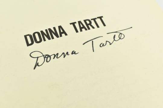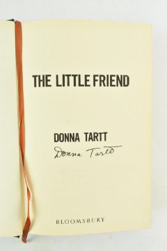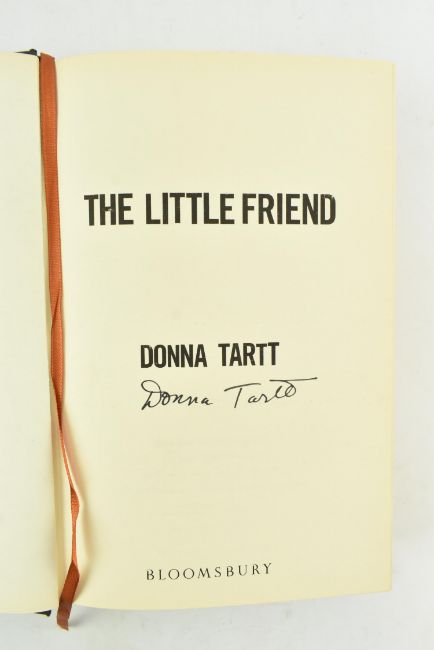 Tartt, Donna. Two signed first editions. Comprising 2002 The Little Friend, signed to title page and housed in custom slipcase; and 2013 Pulitzer Prize winner The Goldfinch, signed in purple ink to title page. Publisher's orig. bindings in unclipped dust wrappers, Foyles sticker & another to cover of The Goldfinch, minor bumping & shelfwear to The Little Friend, else smart. 8vo. (2)