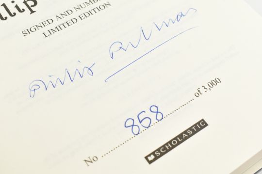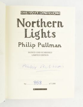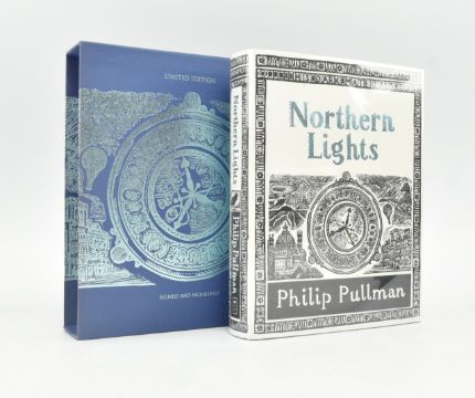 Pullman, Philip. A collection of maj. signed first & limited editions. Comprising 2007 Northern Lights, signed and numbered limited edition in matched slipcase, this No. 858 of 3,000; 2008 Once Upon a Time in the North, a brand new story from the world of the Golden Compass, two copies, one signed (dust damage) and one unsigned; 2010 The Good Man Jesus and the Scoundrel Christ, signed limited edition in matched slipcase, this No. 383 of 400 (slipcase with some leather rubbing from another case); 2012 Grimm Tales, both unsigned, first impression & third impression; 2019 The Book of Dust Volume II - The Secret Commonwealth, three signed special editions in dust wrappers; and signed limited edition of the same in matched slipcase, still in shrinkwrap but having been opened; and 2022 The Imagination Chamber - Cosmic Rays from Lyra's Universe, signed edition. All in orig. bindings, maj. issued with dust wrappers protected by Mylar wraps, some wear & dust to edges, otherwise a smart collection with only light general shelfwear. Largest 8vo. (11)